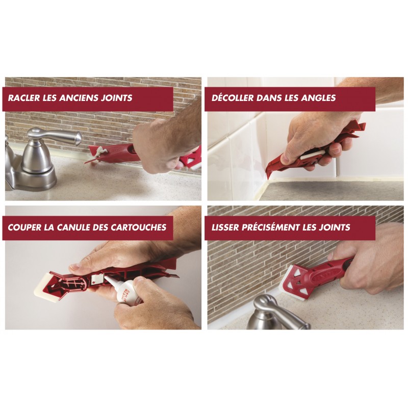 RAC’LISS est l’outil 4 en 1 idéal pour retirer les anciens joints silicone ou autres et parfait pour en lisser de nouveaux.