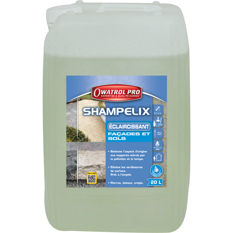 Nettoyant/éclaircissant pour façades et sols maçonnés, noircis et tachés par le temps et par la pollution.