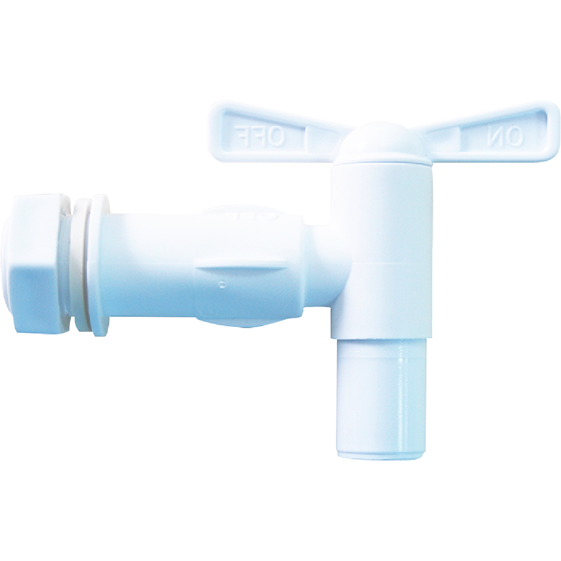 Accessoires de récupération d'eau pour cuves cylindriques plastiques. Robinet de puisage en plastique 20 x 27 (RCP). Robinet permettant de récupérer l’eau en sortie de cuve. Montage facile.