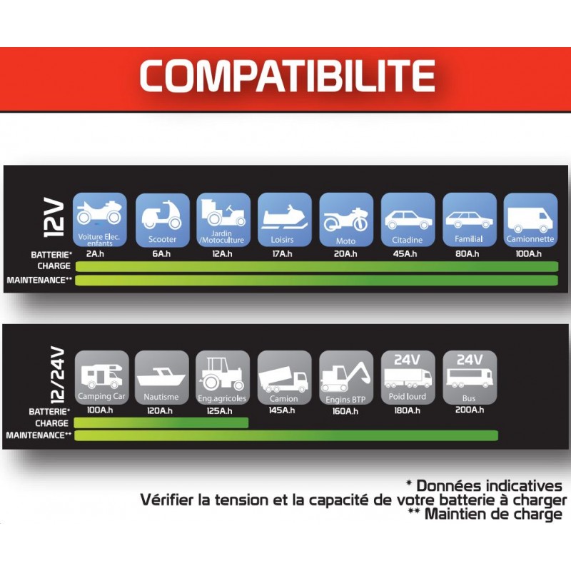 2 modes de charge : 12V/24V