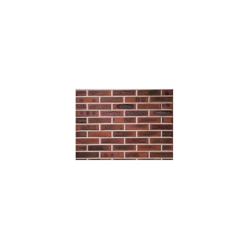 Brique aux arêtes vives, de couleur rose, flammée, avec des nuances soutenues de noir et un spectre légèrement pourpre par endroits, avec engobe.
