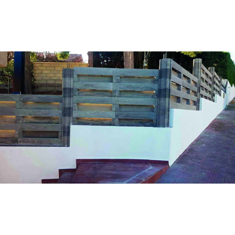 Clôture modulable double face fabriquée en "pressé/vibré". Elle existe en 2 versions : lame courbe ou lame droite et disponible en 3 coloris : blanc, anthracite et marron.