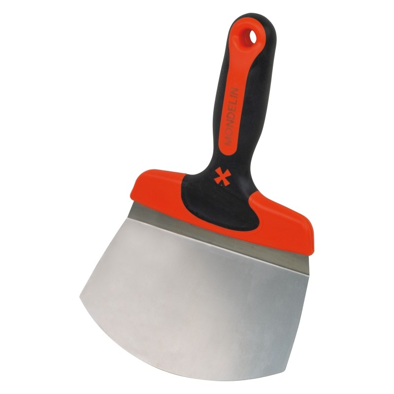 Outil qui permet de racler les pots d'enduit - Gain de temps, réduit le gaspillage - Lame en acier inoxydable pliée rigide de 0,5mm d'épaisseur - Poignée bimatière (base de notre couteau de 16)