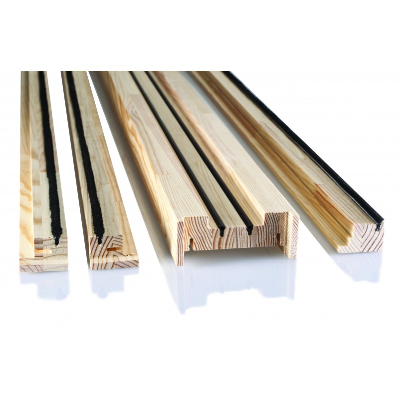 "Habillage de finition couvre-joints intégré pour châssis Sillage TRADITION. Pin brut. Simple vantail. Traverses à recouper à la largeur. Prêt à poser ou à peindre.