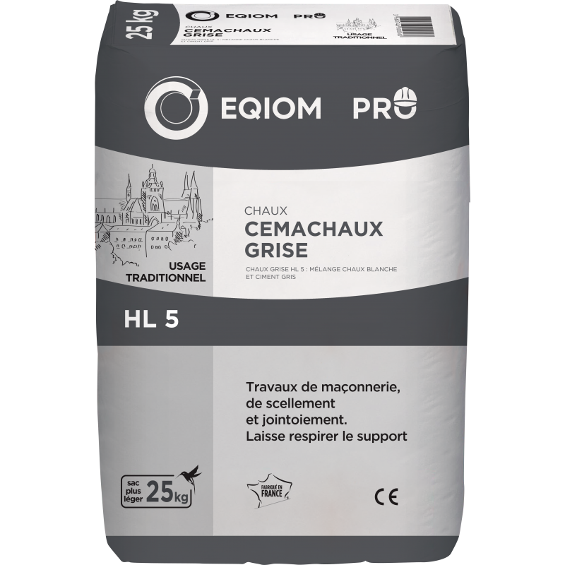 Poids : 25 kg. Chaux formulée pour travaux nécessitant l'utilisation de mortiers "bâtards".