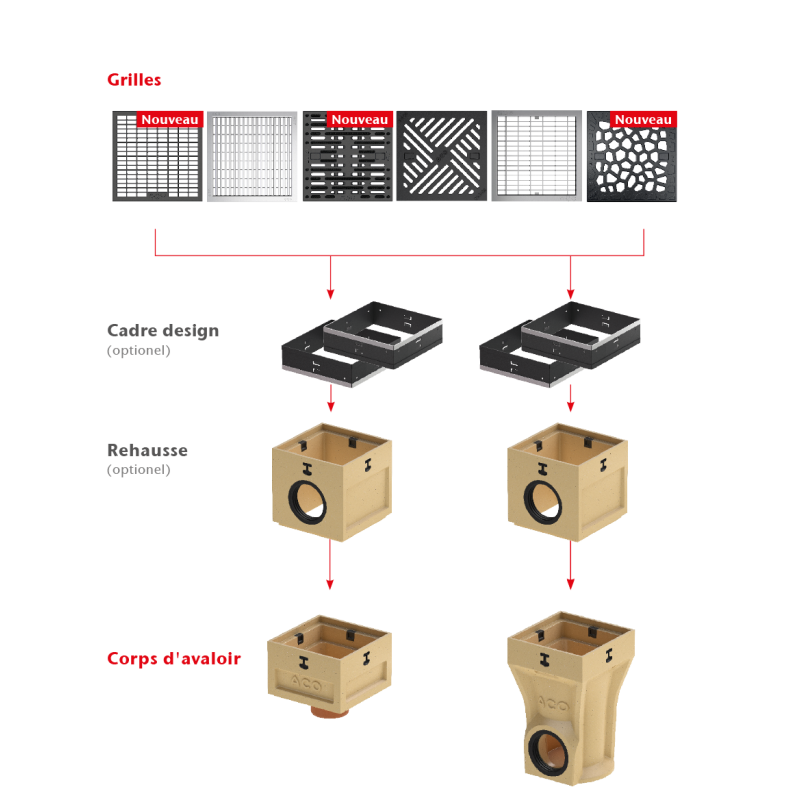 Il existe un grand nombre de méthodes de pose mais avant toute chose, il faut contrôler toutes les pièces avant de les poser ; se reporter aux conseils de pose des industriels et les respecter. Le mode de pose dépend des charges de circulation et du revêtement prévu. À partir de C250, toutes les grilles doivent être fi xées pour éviter un danger pour la circulation.
