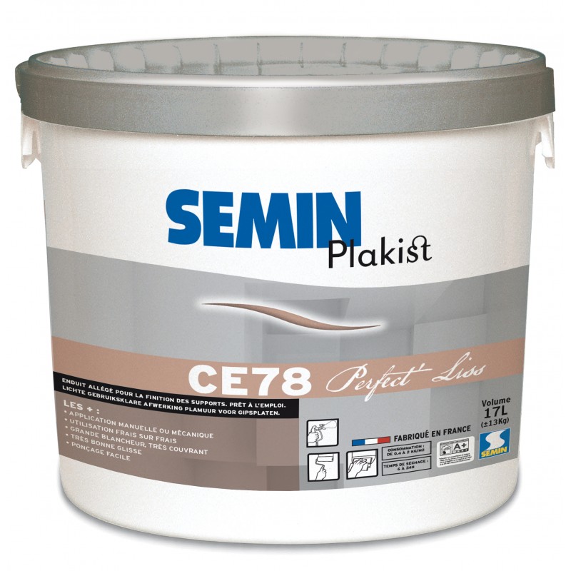 CE 78 PERFECT'LISS est un enduit en pâte allégée prêt à l'emploi spécialement formulé pour réaliser la finition des supports en intérieur (murs et plafonds). CE 78 PERFECT'LISS est spécialement formulé pour allier les avantages d'un produit garnissant tout en gardant les qualités de finition d'un enduit de lissage. Une très bonne glisse pour un ponçage facile. Il s'applique sur plaques de plâtre, plâtre, béton cellulaire, briques, toiles de verre, carreaux de plâtre, béton, enduit ciment, anciennes peintures.