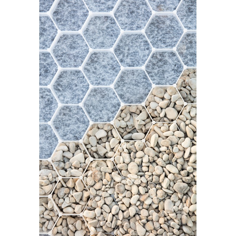 Stabilisateur graviers + géotextile 60 g/m². Dimensions : 1,16 m x 0,8 m (0,93 m²) x 30 mm. Résistance à la compression : 450 T/m².