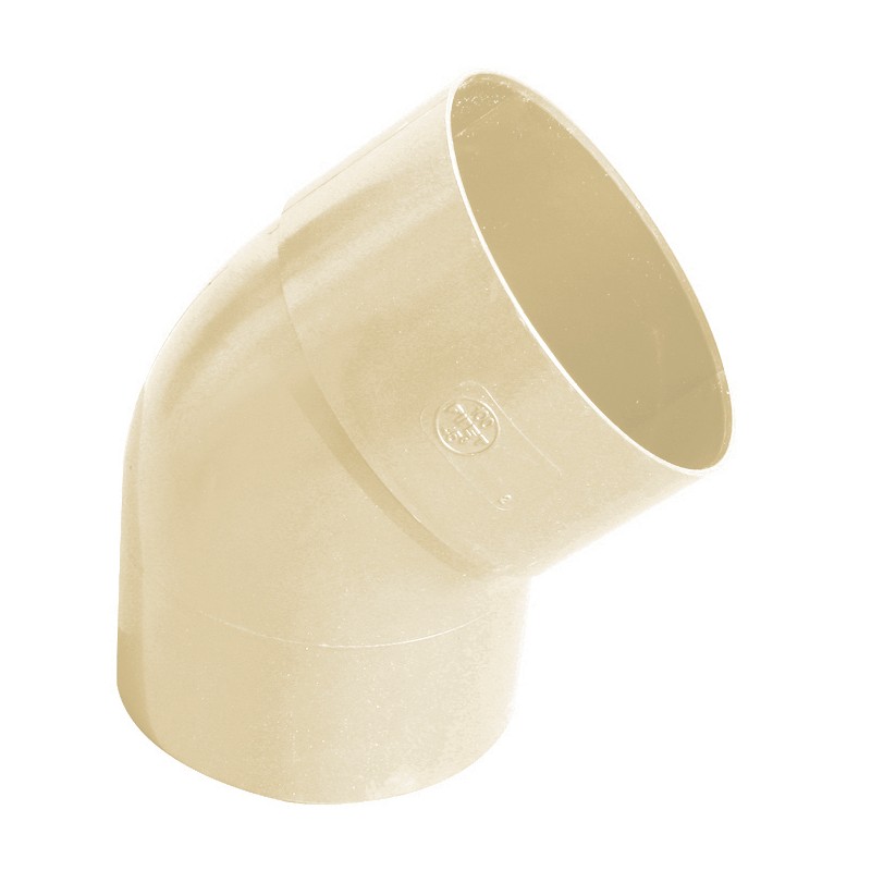 Coude PVC sable 45° MF pour tube de descente Ø80. Les accessoires permettent lors de l'installation de personnaliser le système pour l’évacuation des eaux pluviales.