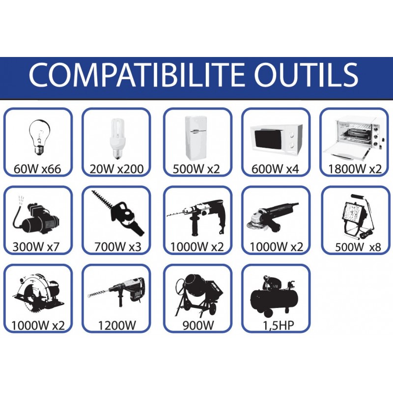 Sorties : 2 prises NF 230V AC
