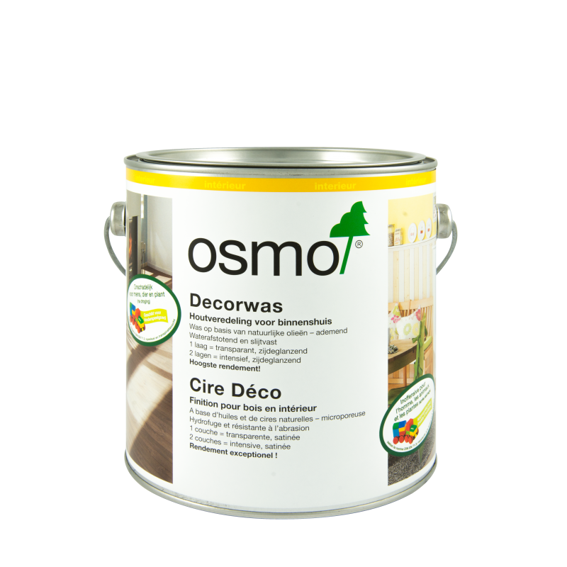 La Cire Déco permet la protection et l'embellissement du bois à l'intérieur en un seul produit : idéale pour les meubles et jouets pour enfant ainsi que pour les lambris, plinthes, poutres, surfaces de meuble en bois. Associé à une Huile Cire Osmo en deuxième couche, elle est également indiqué pour la mise en teinte des sols en bois, contre-collé, stratifié et MDF.