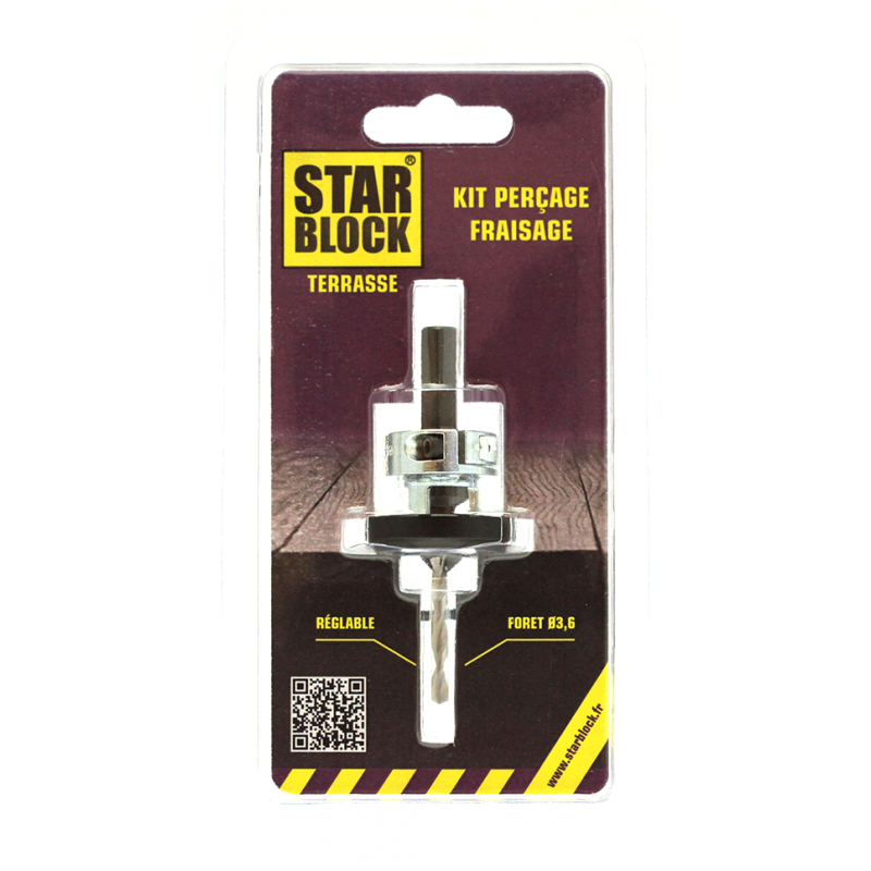 Kit composé d'un forêt ø3,6 et d'une fraise ø10, avec butée profondeur réglable pour pré-perçage