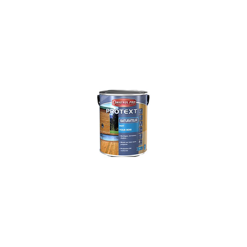 Saturateur mat à l'eau pour terrasses, bardages... Existe en 1 L, 5 L et 20 L en 7 teintes.