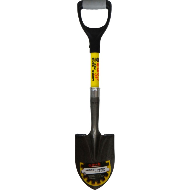 Compacte. Pour tous les usages où le manche peut gêner : vider des sacs, remplir la bétonnière, travailler en hauteur. Tient dans un véhicule : sert de pelle d'appoint. Âme en fibre de verre. Poignée bimatière confortable. Rebords pour ne pas abîmer les chaussures.