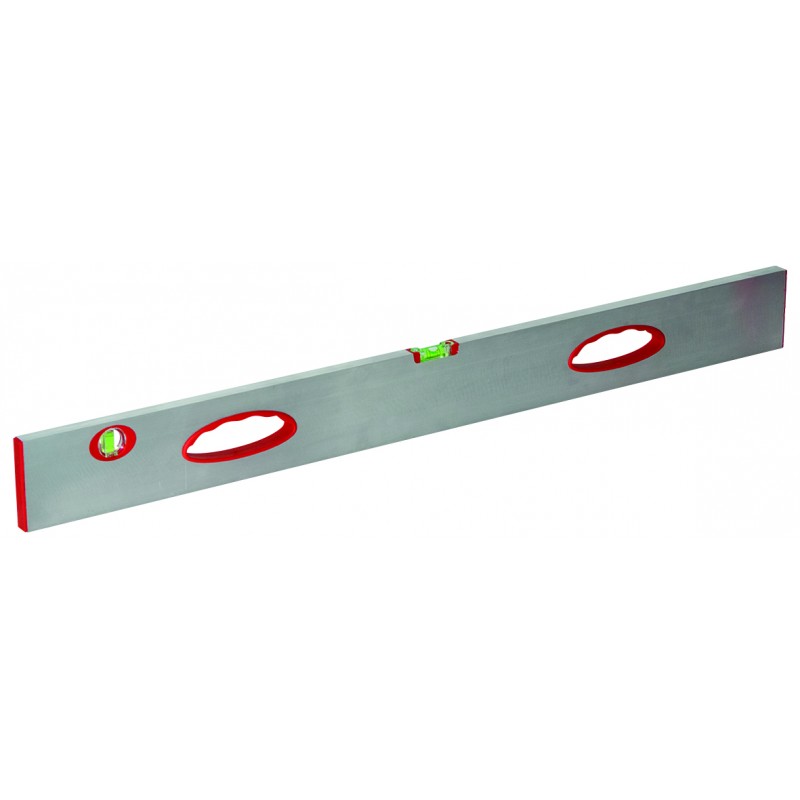 Profilé aluminium 100 x 18 mm livré avec embouts plastique. 2 fioles en plexiglas incassable (1 horizontale, 1 verticale). 2 poignées centrées par rapport à fiole horizontale. Précision : 1 mm/m.