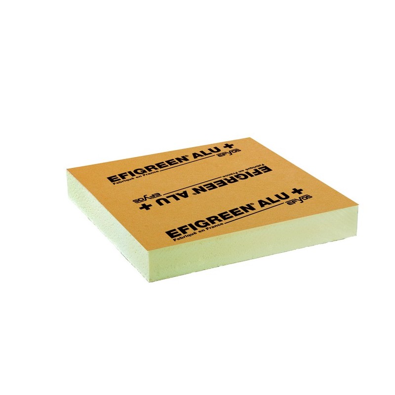 EFIGREEN® ALU + est un panneau isolant support d’étanchéité en mousse rigide de polyuréthane (PIR) expansée entre deux parements multicouches étanches.