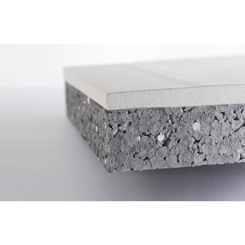 Complexe de doublage constitué d'un panneau isolant en polystyrène graphité collé sur une plaque de plâtre à bords amincis de 13 mm standard.