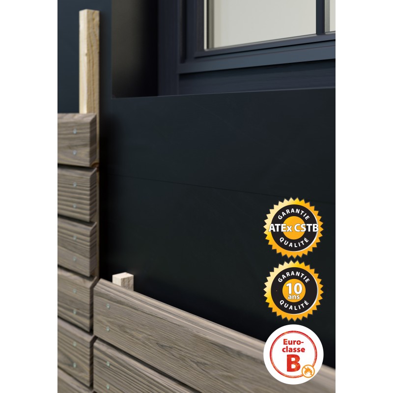 Pare-pluie noir stabilisé aux UV. Pour claire-voie avec ajourations jusqu'à 20 mm (ou 20 %). Jamais un seul désordre en plus de 20 ans de commercialisation, la référence qualité pour les bardages ajourés. Réaction au feu Euroclasse B-s1, d0 (équivalent M1). Test 5.000 heures UV : phase chantier jusqu'à 6 mois sans bardage (DTU 31.2). Deux bords autocollants intégrés : étanchéité au vent (version PLUS uniquement). Hautement perméable à la vapeur d'eau (HPV). Conforme au DTU 31.2. Rouleaux de 1,5 m x 50 m.