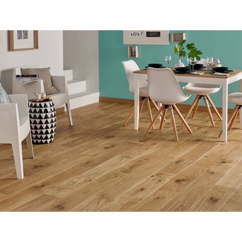 Doté du système "clic", ce parquet en chêne va sans doute faire parler de lui ! Il propose de larges lames de 184 mm sur 1208 mm de long ultrafaciles à poser. Des dimensions idéales pour réveiller votre intérieur d'une touche de luxe qui rend hommage au savoir-faire de l'artisanat français.