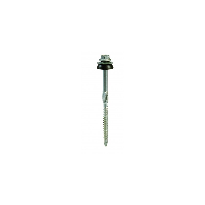 Tirefond autoperceur Ø 8x130 avec pointe foret et ailette d'élargissement, assemblé avec rondelle dôme pour la fixation de plaque fibres-ciment sur panne bois.
