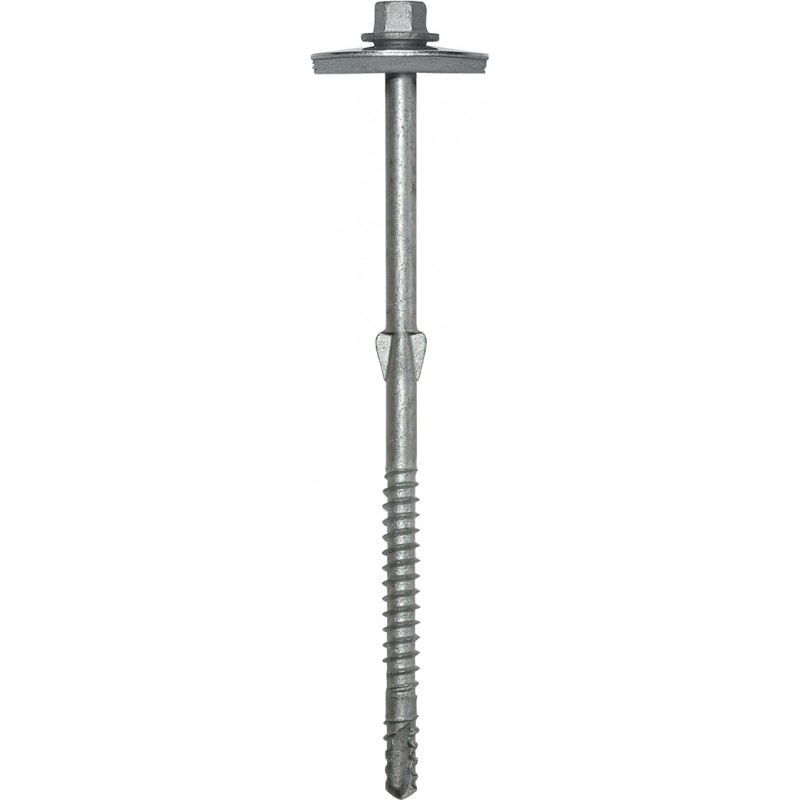 Vis autoperceuse à ailettes et tête hexagonale (6 pans de 8). Ø 6,5 x 130. Pour charpente bois. Matière : acier galvanisé à chaud au trempé (Z450 : 450 g/m2)