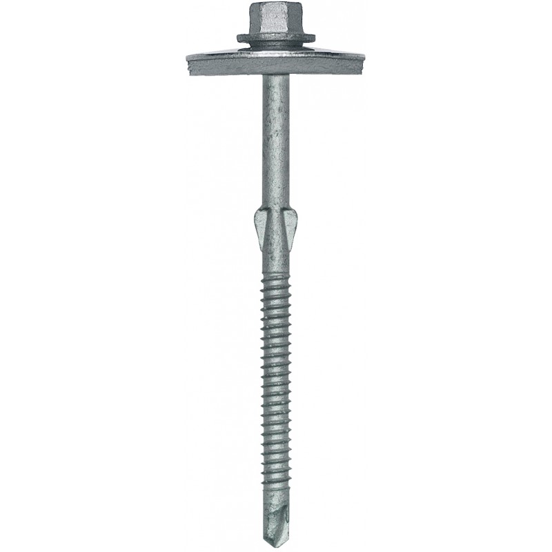 Vis autoperceuse à ailettes et Tête Hexagonale (6 pans de 8 mm) Ø 6,3 x 105. Matière : acier SUPRACOAT 2C + Rd. Vulca Galva / EPDM Ø 30 mm. Résistance à la corrosion = 15 cycles Kesternich. Capacité de perçage : 1,5 à 4 mm. Fixation en sommet d'onde sur charpente acier.
