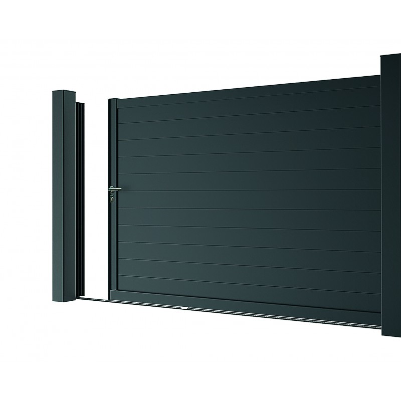 Portail coulissant : Lg 3,00 - 3,50 - 4,00m Ht.1,66 et 1,81m. Portillon : Lg.1,00 - 1,20m- Ht.1,66 et 1,81m. Caches jour et profils de réception de série.