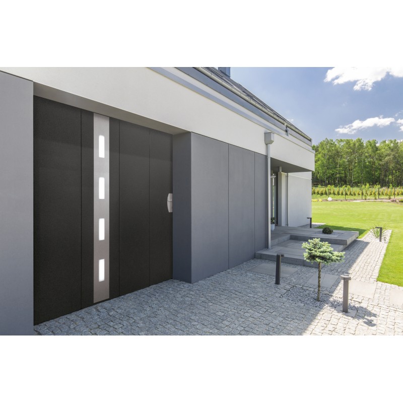 La porte de garage sectionnelle à refoulement latéral Circée, réalisée en acier, est composée de panneaux lignés, lisses, microrainurés, monorainurés, à cassettes ou rainures horizontales côté extérieur, et lignés à l’intérieur. Ils sont constitués de deux faces en acier avec mousse polyuréthane injectée pour l’isolation. Cette porte est équipée en partie inférieure d’un seuil en aluminium pour faciliter le guidage. Motorisée de base, elle présente de nombreux atouts : panneaux anti-pince-doigts, arrêt automatique de la motorisation, ouverture partielle, portillon en option.... Livrée blanche de base, la porte Circée peut, sur demande, être livrée dans la teinte RAL désirée.