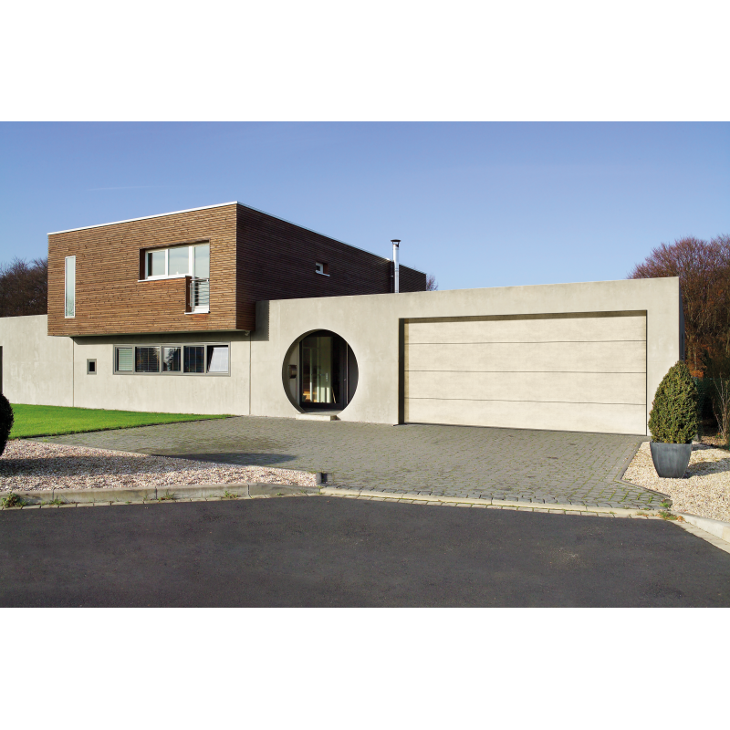 Porte sectionnelle à refoulement plafond. Panneaux double paroi acier galvanisé 42 mm avec isolation mousse polyuréthane. Large choix de décor, parmi 24 finitions. Portes manuelles ou motorisables avec motorisation ProCom.