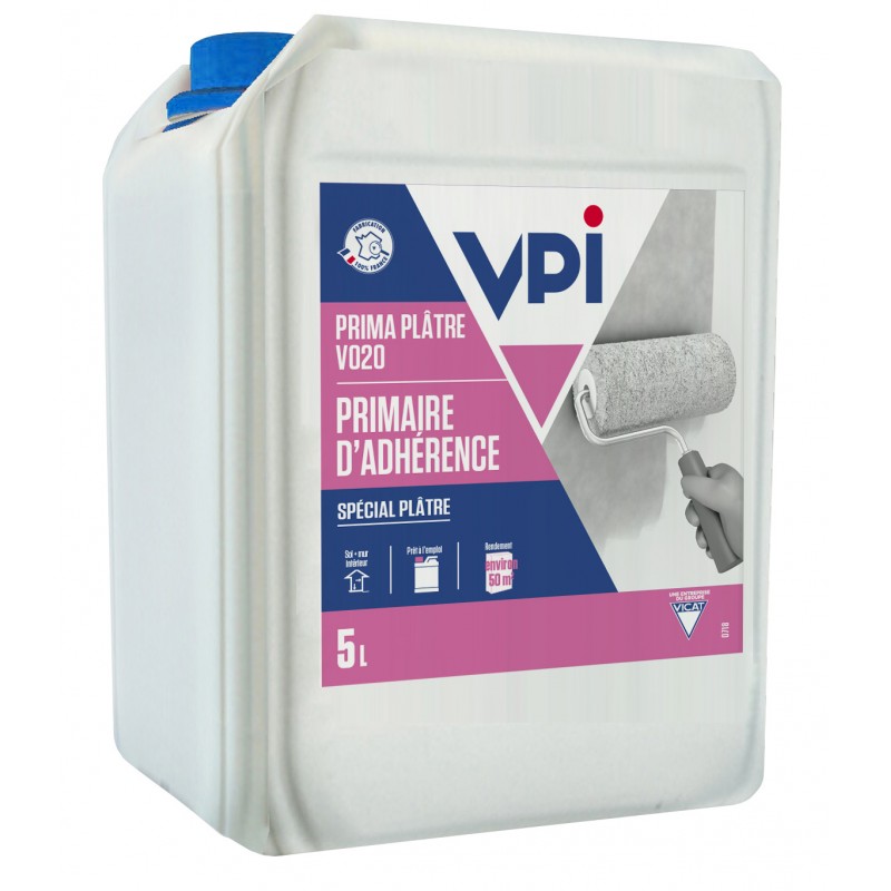 Primaire d’adhérence pour mortier colle et enduit de ragréage ou de dressage sur supports à base de plâtre. Bidon de 5 L (carton de 4 bidons)