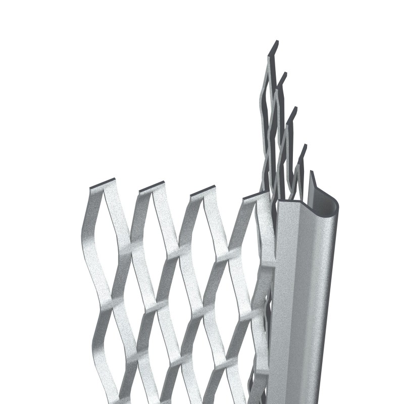 PROFILÉ EN ACIER GALVANISÉ DÉPLOYÉ STANDARD POUR ENDUITS EXTÉRIEURS EN FINITION PROJETÉE OU ÉCRASÉE A BEC ROND, POUR PROTEGER ET REGLER L'APLOMB DES ANGLES SORTANTS