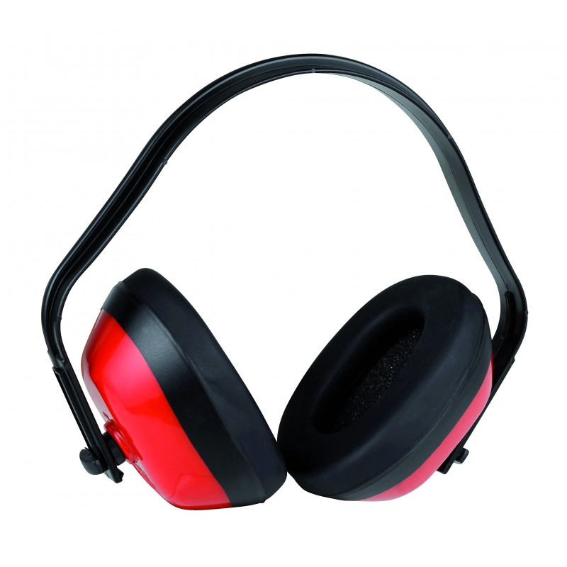 Casque antibruit léger, arceau en polyamide. Coquilles rouges en ABS, réglable sur arceau, coussinets noirs confortables. Ce casque apporte une atténuation moyenne globale (SNR) de 27,6dB. Pour l'utilisation de tondeuse thermique, taille-haie, bétonnière, perforateur... Ce casque antibruit est conforme à la norme EN 352-1 : 2002. Coloris : noir/rouge