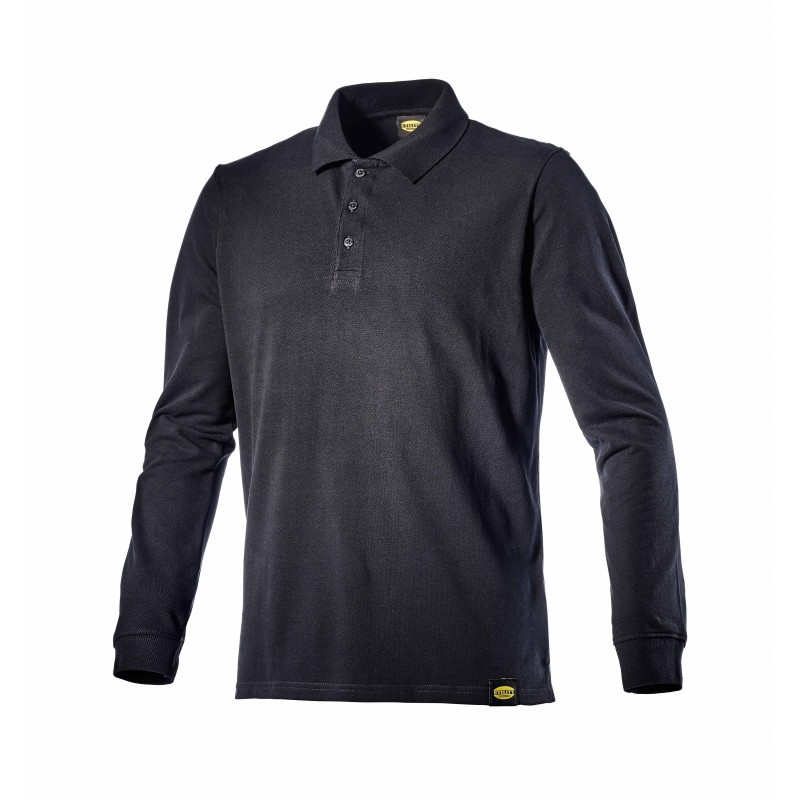 Polo piqué manches longues. Composition : 100% coton piqué 240 gr/m2. Tailles : S/XXXL - Disponible en 3 coloris : 80013 noir, 60062 bleu classique, 75070 gris métal.