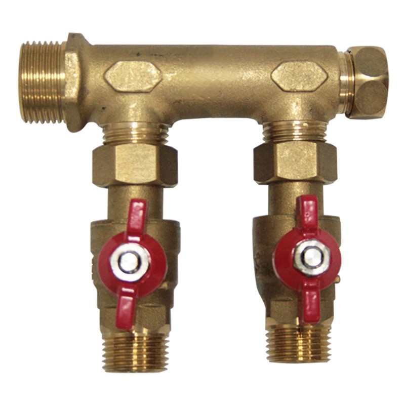 Collecteur Boutté mâle 20x27 femelle 15x21 à écrou mobile avec 2 départs mâles 15x21 avec vannes ACS