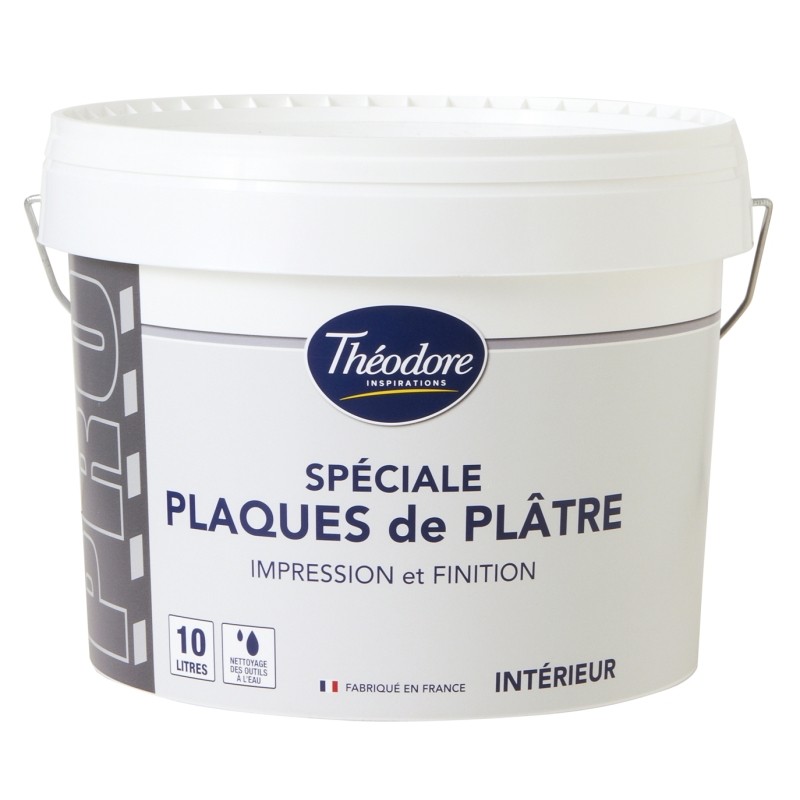Peinture d'impression à base de résine acrylique pour plaques de plâtre et dérivés. Rendement 7 m²/L. Existe en fût de 10 L et en pot de 4 L.