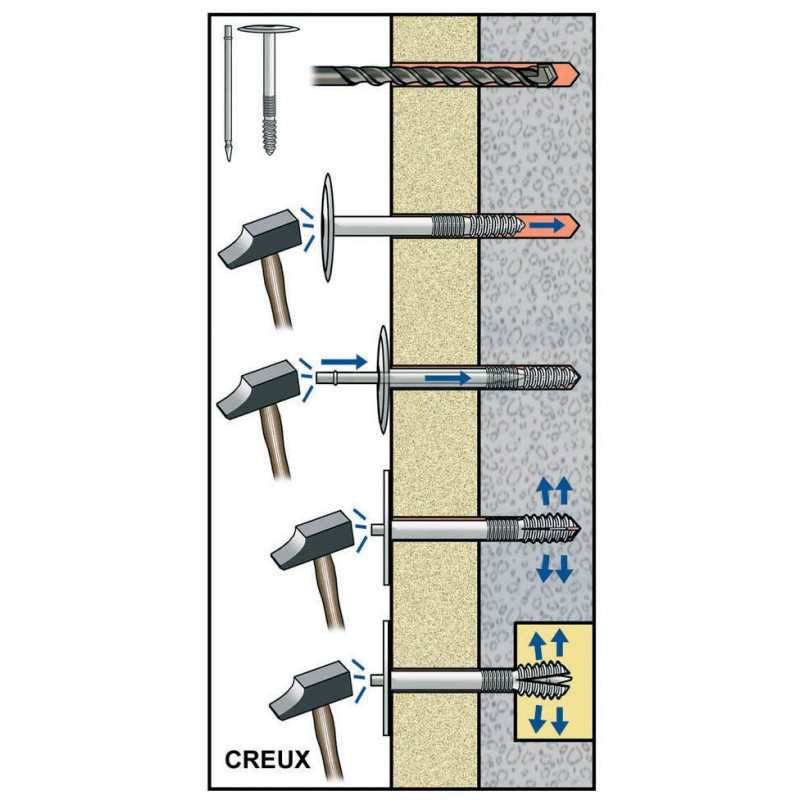 Cheville spéciale avec clou d’expansion pour fixation d'isolant.