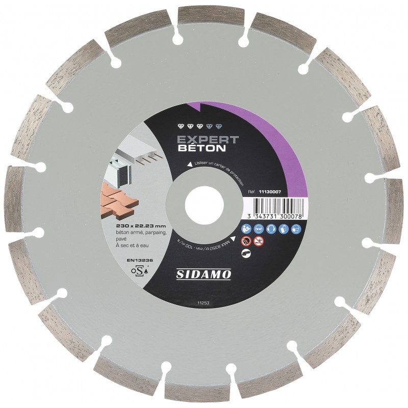Disque à segments soudés laser. Performance optimisée pour une utilisation courante dans les matériaux de construction. Existe en Ø 115, 125, 300, 350 mm.