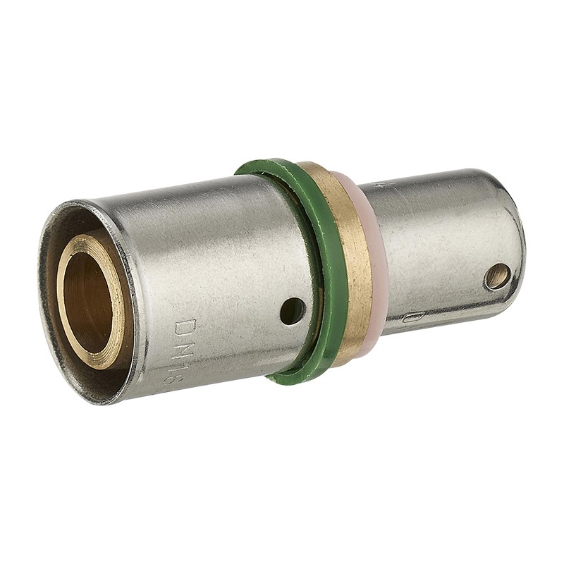 Raccord à sertir. Profil TH. Outillage nécessaire : pince à sertir. Permet de passer d'un diamètre de tube à un autre diamètre.