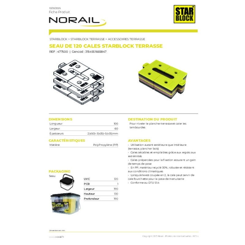 Lorsqu'elle est coupée en 2, la cale peut servir de cale fourchette pour la pose de menuiserie.