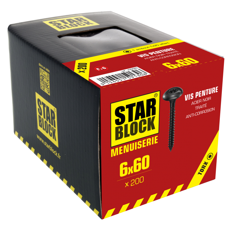 Vis penture acier traité noir anticorrosion - 6x60 - boîte de 200 STARBLOCK