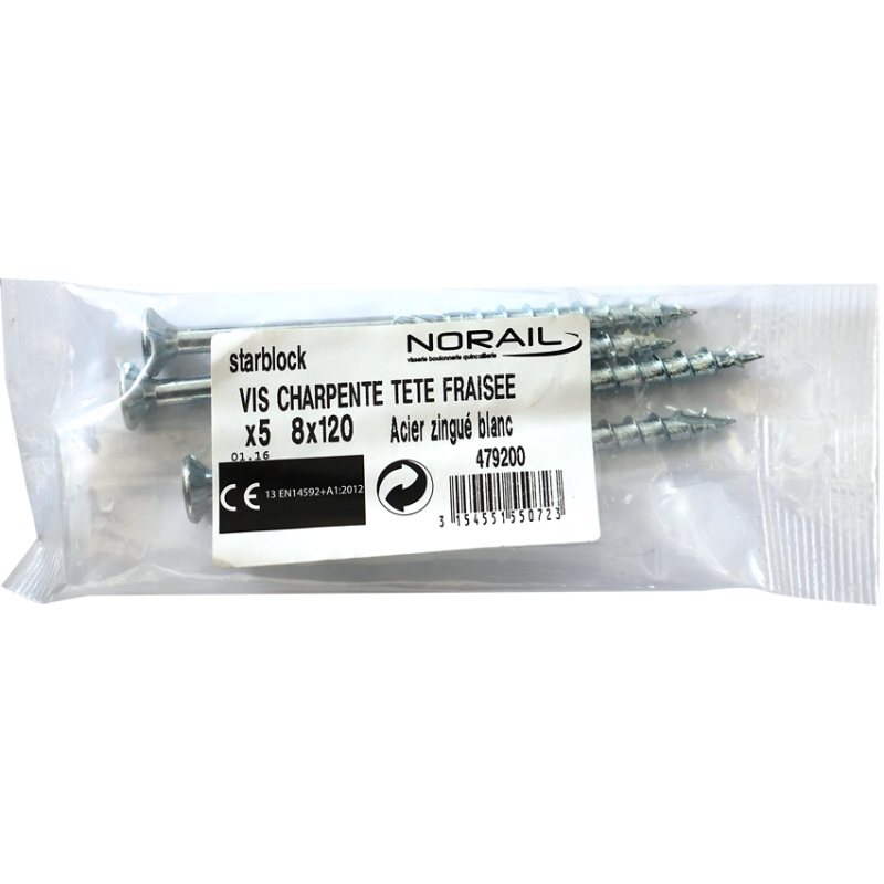 Vis charpente tête fraisée 8x120 - sachet de 5 STARBLOCK