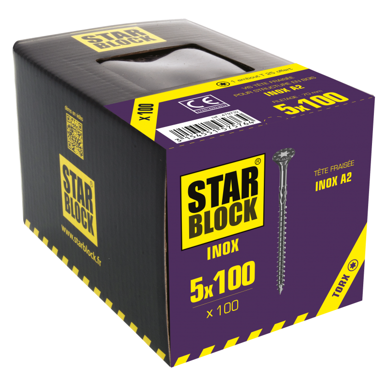 Vis Inox A2 - 5x100 - boîte de 100 STARBLOCK